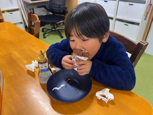 口の周りをチョコや生クリームで汚しながらもしっかりと食べていました❗