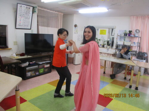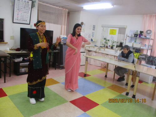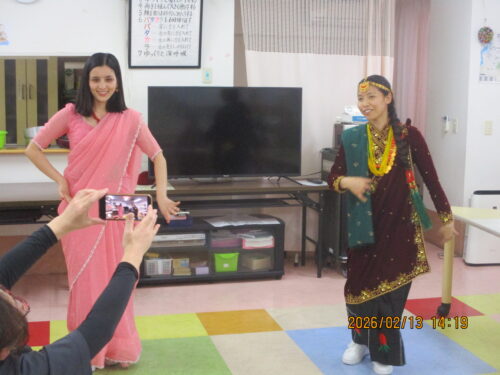 今回は、実習生のお二人がに2週間の実習が最後という事で、最後に民族衣装を着て下さって、踊りも踊って下さいました(*´ω`*)