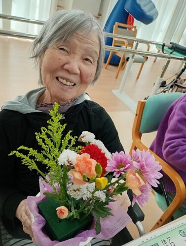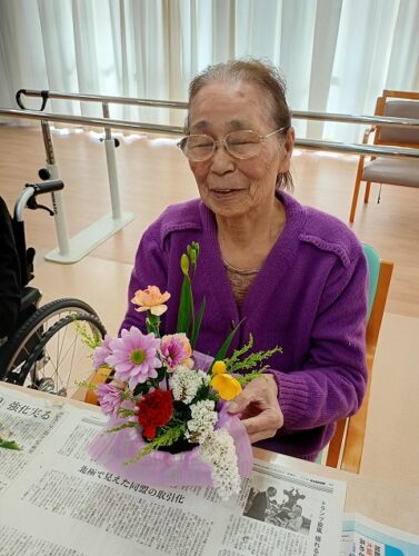 毎月いろんなお花を持ってきてくださいます。お花の説明を受けてオアシスに