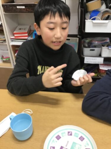 まずは、職員がたこ焼き器を使って丸く焼いたふわふわのホットケーキ生地に、