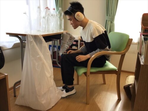 皆さんで手分けして、ラベルを剥がす人。
