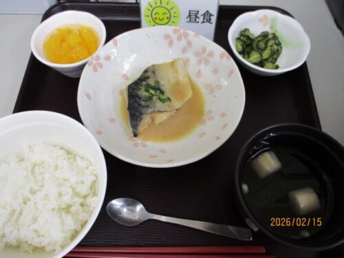 ↓サバの味噌煮 胡瓜の胡麻酢和え すまし汁