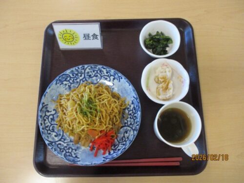↓ソース焼きそば しゅうまい ほうれん草のお浸し