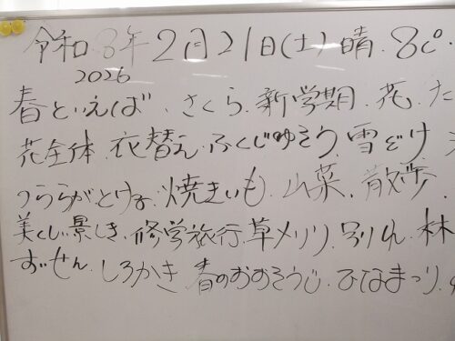 さわやか室蘭弐番館 3階 21日活力朝礼♪ 2026-02-22 2026-02-21 皆様こんにちは♪ 21日の様子をお届けします ラジオ体操スタートです ぶれてしまいました💦 続いて頭の体操 春と言えば?でお答え頂きました🌸 昼食前のスマイルショットです! 賑やかな一日になります様に☆