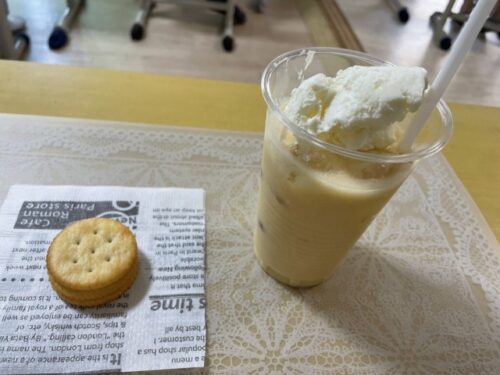 おやつはミックスジュースフラッペにクラッカーでした✨