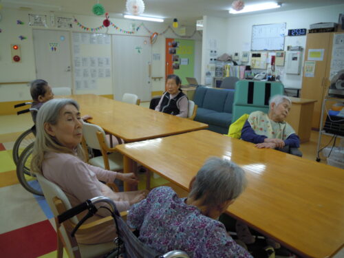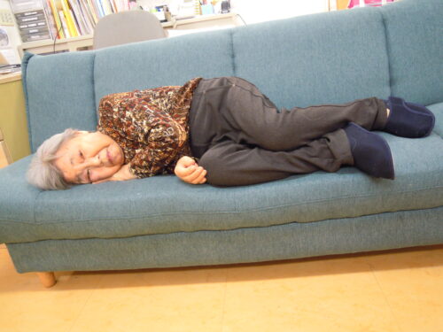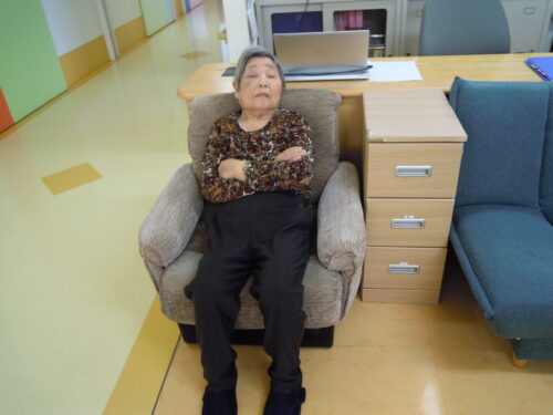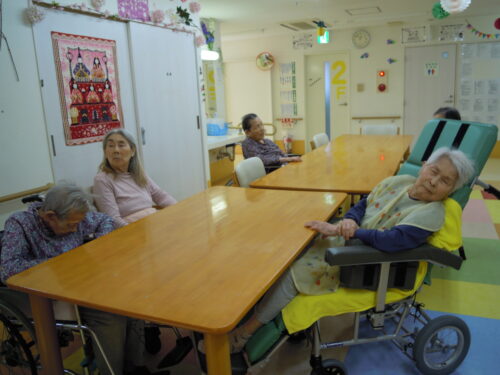 お食事も終わり,歌声も穏やかで,音楽もゆっくりなので,うたた寝をしているT様。