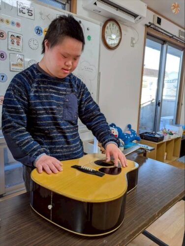 音楽に合わせてギターの音を奏でて楽しんでいます!