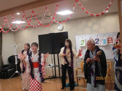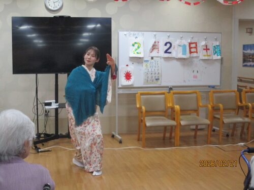 家元の 歌に合わせて、セリフを言ったり心がこもった踊り