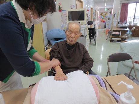 グループホームたいよう ♪ アロママッサージ ♪ 2026-02-09 2026-02-24 アロママッサージの施術の方が来られました🌺 皆様、気持ちよさそうにされていました🌺 フロアーにいい匂いが立ち込めていました🌺 ☆ う す い ☆彡 _(._.)_