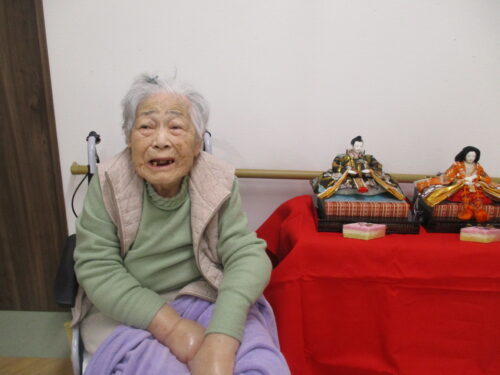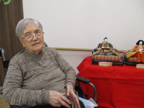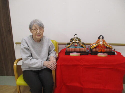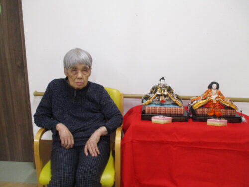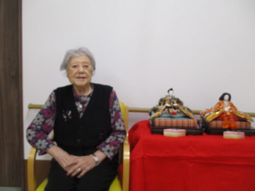先日ひな人形を飾りました!皆様いい笑顔で綺麗だねと話されていました!