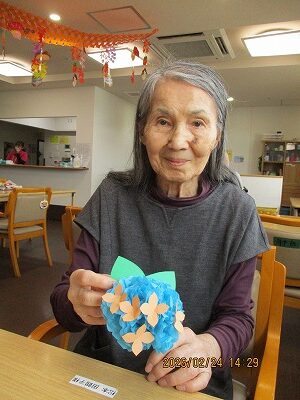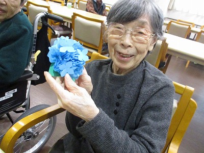 今週のレクリエーションで予定をしていた紫陽花作り💕