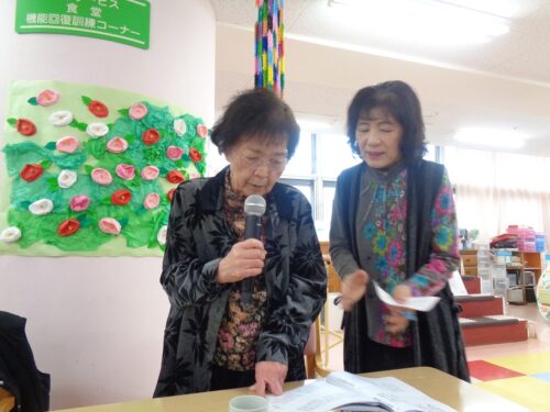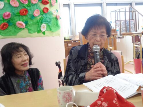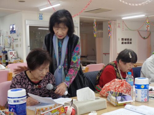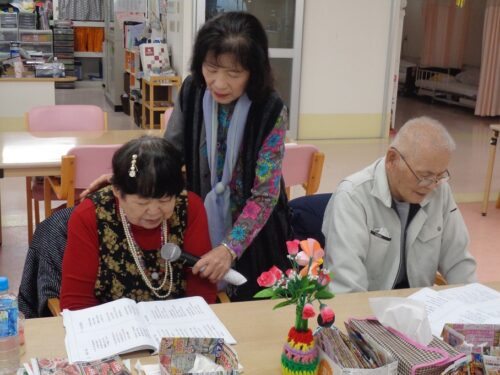 ボーカルの女性が利用者様一人ひとりの席を回って