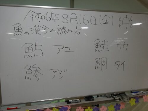 さわやか室蘭弐番館 2階 16日活力朝礼♪ 2024-08-17 2024-08-17 皆様こんにちは♪ 昨日の様子をお届けします 日付の確認後はラジオ体操です 最後は大きく深呼吸です 頭の体操は漢字(魚)の読み方 お答え頂きました🐟 笑い声溢れる一日になります様に☆