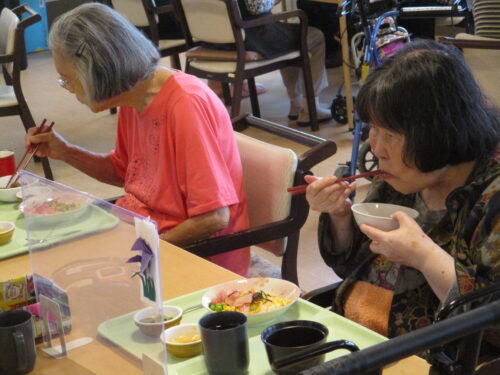 さわやかひだか館 今日の昼飯は...。🍚 2024-08-19 2024-08-17 こんにちは‼ひだか館斉藤です☺☺☺ 今回は❓ 昼食の様子をお送りします✋✋✋ 今日の♪昼食はちらし寿司です🐟 では、いただきます⁉ 皆さん⁉美味しそうに召し上がってますね!(^^)! ありがとうございます💖💖💖💖