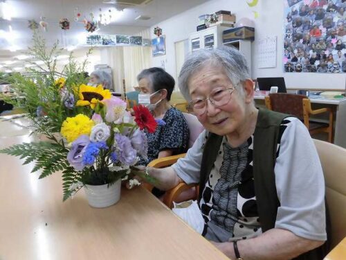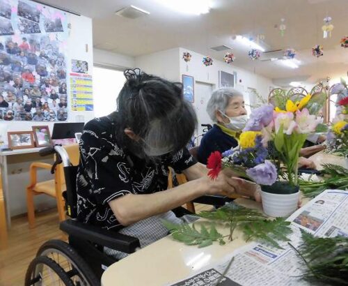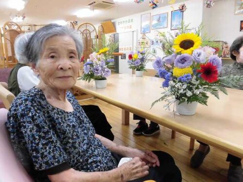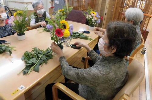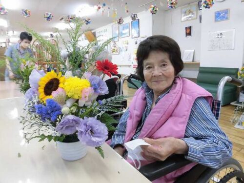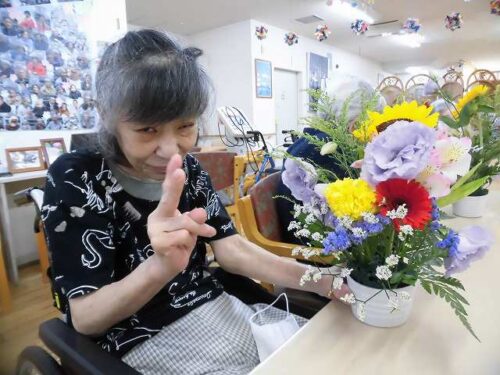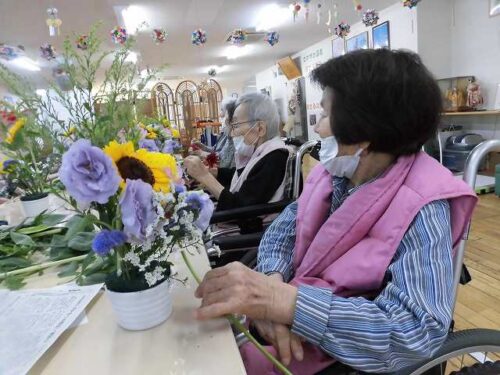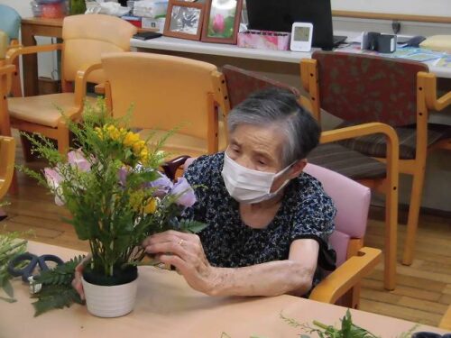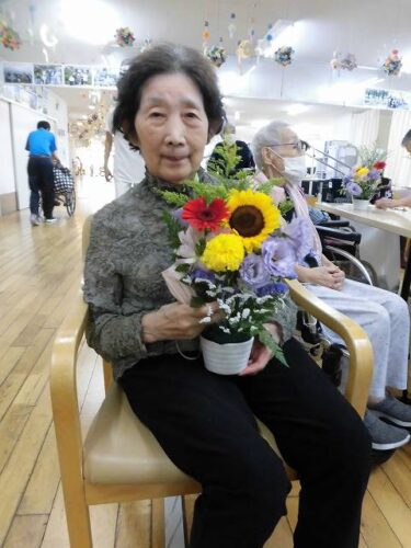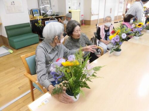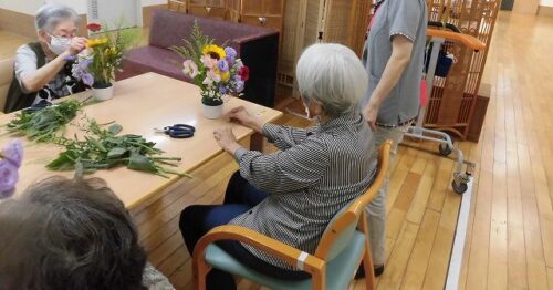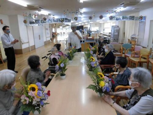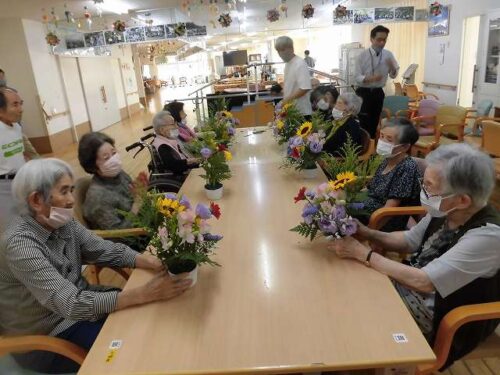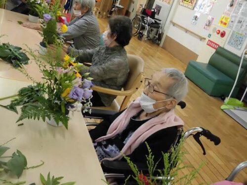 今回のフラワーアレンジメント教室、お花が大好きな8名の入居者様にご参加いただきました🤗💖