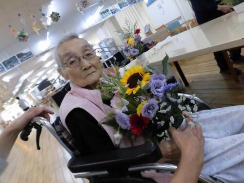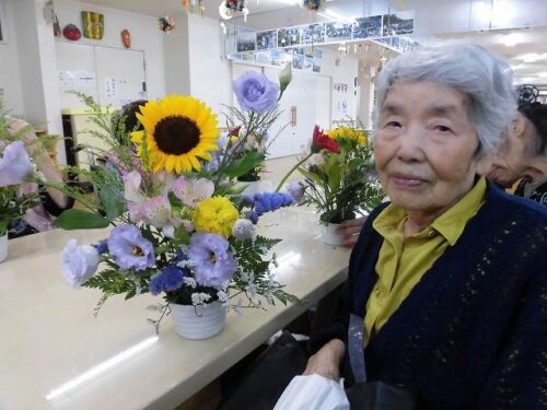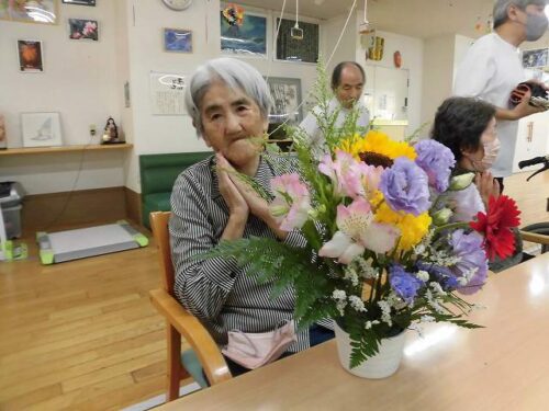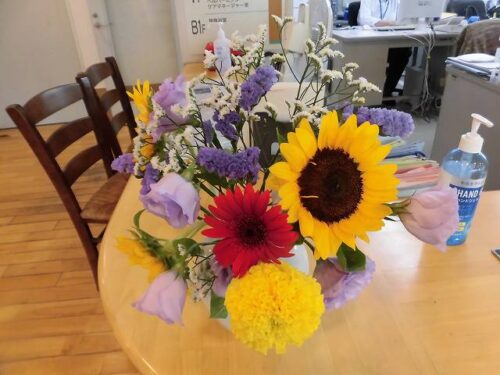 ・・・事務所にもお花のおすそ分けがありました🎀(アレンジ💐 by篠田ケアマネ)