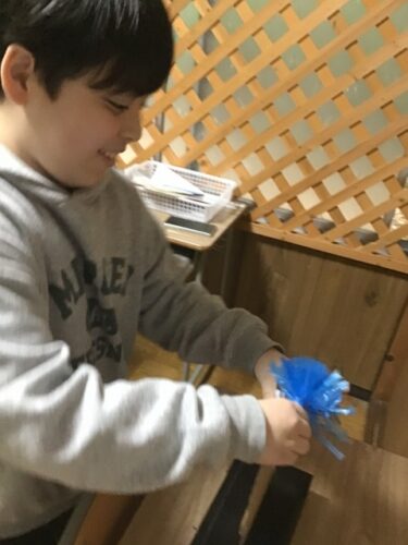 毛糸やスズランテープの付いた洗濯ばさみをつまんで付け替えていきました✨