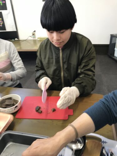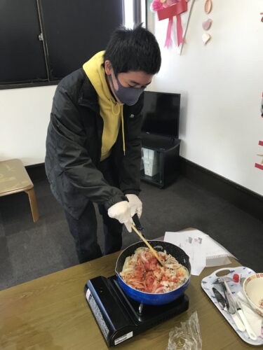 昼食はハヤシライスのほかに、サラダとハンバーグもあった為、ハヤシライス係とサラダ係とハンバーグ係に分かれました。