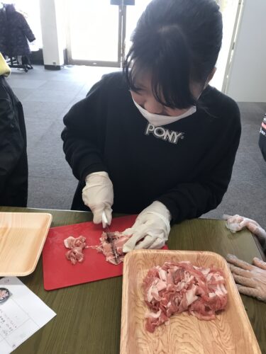 お肉を切ったりしました。