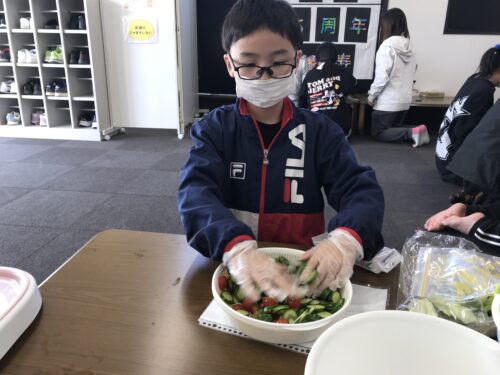 続いてはサラダづくりの様子です。