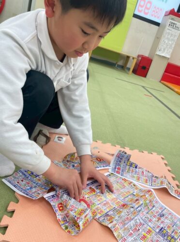 どうしたらタワーにできるか考えながら、真剣に組んでいました。