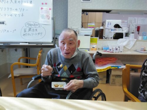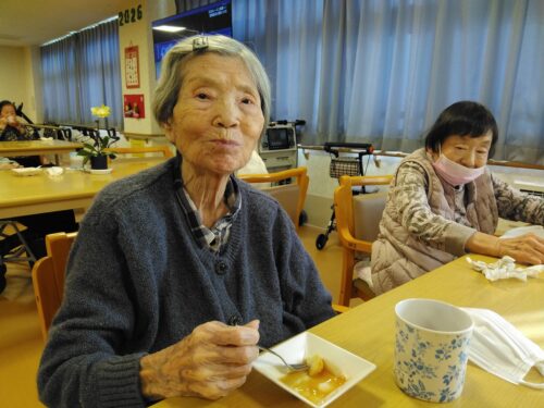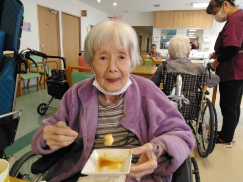 今日のおやつは【豆腐白玉みたらしがけ】でした。