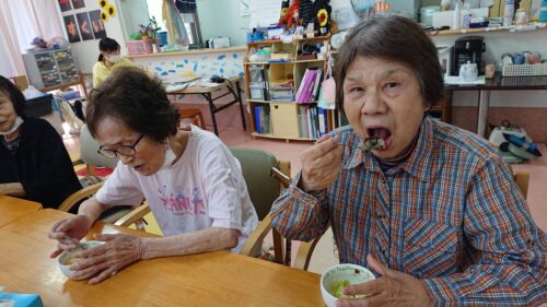 おやつには、あんこをのせたかき氷を食べ、