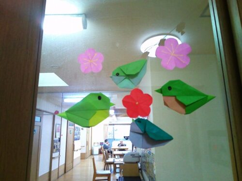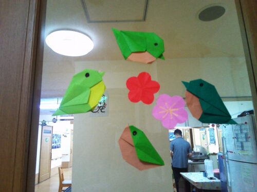 今日も折り紙うぐいす梅の花を折って下さいました。🤗