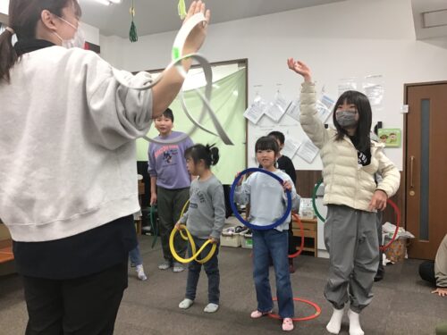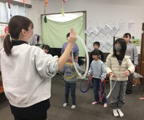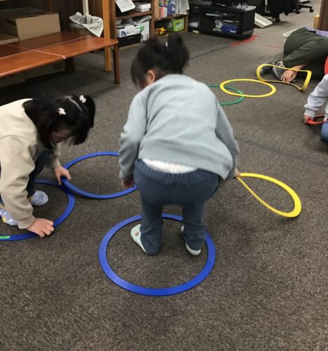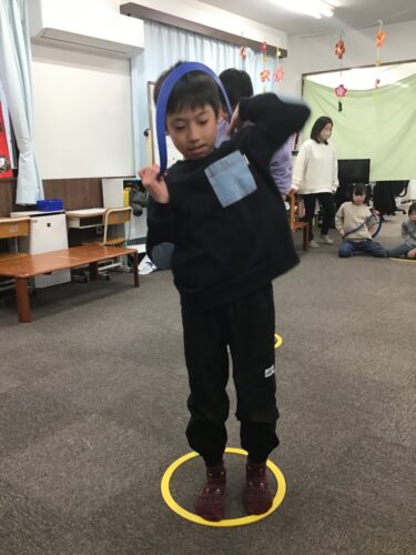 2月24日(火)は運動あそび「フープですすめ!」に挑戦しました。