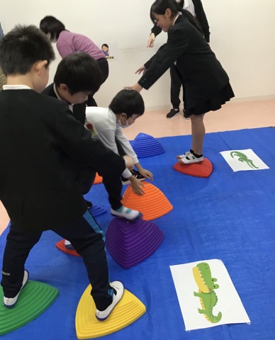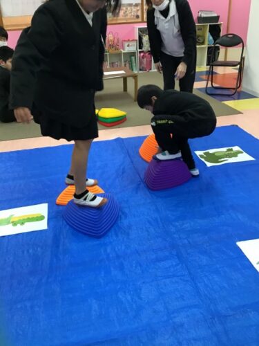 「落ちてしまうとワニさんがいるよ~」という職員の言葉にみんなドキドキです🤩
