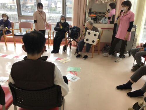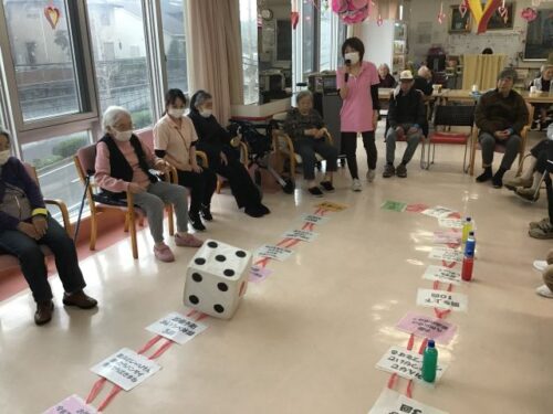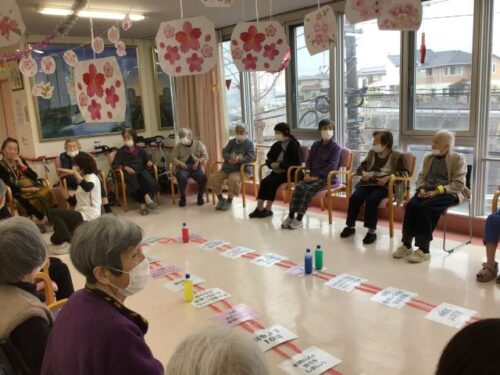 ひな祭りにちなんだマスもあり、みんなで「嬉しいひな祭」の歌を大合唱したり