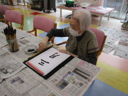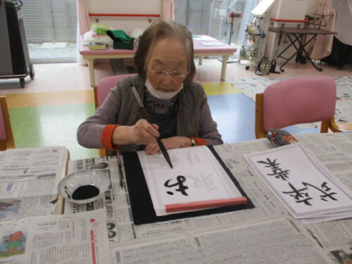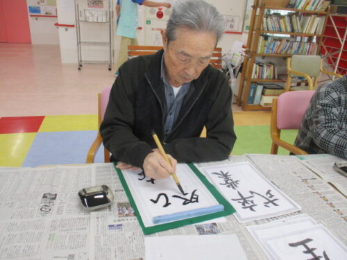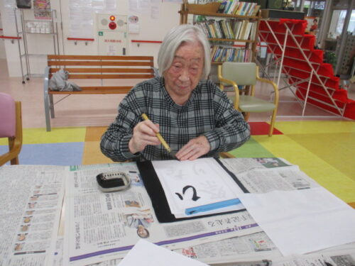 桜弐番館では午後に書道レクがありましたのでそちらの様子をご紹介します!