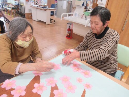 さわやかグループホーム なすしおばら すいせんユニットの様子 2026-03-07 2026-03-04 もうすぐ桜🌸の季節がやって来ます そこでユニット内を飾る桜🌸の絵の貼り絵をなさって頂きました。 一枚一枚のりで貼っていくので手がベタベタになってしまうのですが笑顔で作業をして下さってます。 どんな桜が完成するのか楽しみですね(*^_^*)