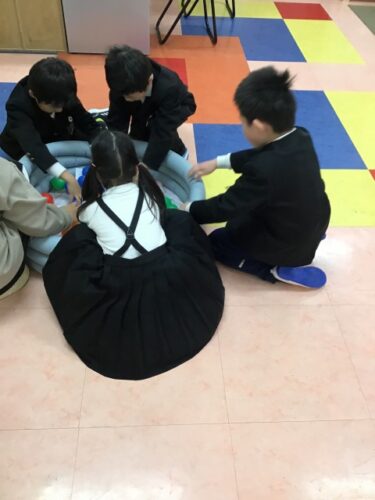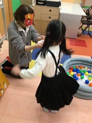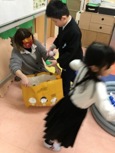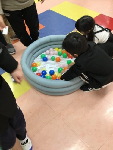 オニさんが言ったのと同じ色のボールをいっしょうけんめいに探して