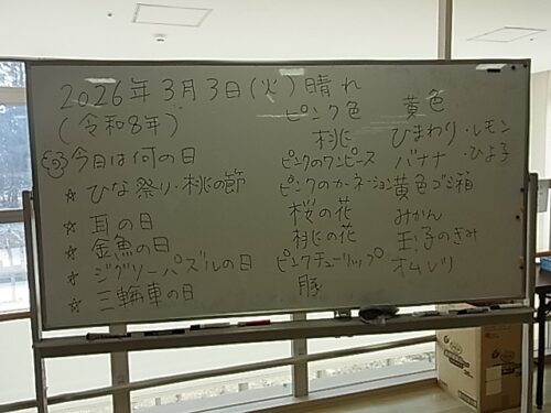 さわやか室蘭弐番館 2階 3日活力朝礼♪ 2026-03-04 2026-03-04 皆様こんにちは♪ 3日の様子をお届けします ラジオ体操スタートです 頭の体操は桃色と黄色の物お答え頂きました 穏やかな一日になります様に☆
