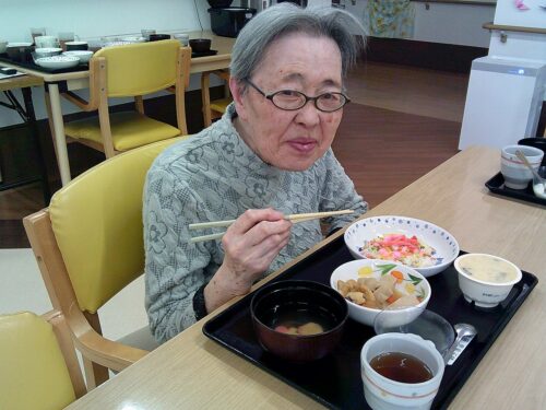 ひな祭りの日 昼食はお煮しめとちらし寿司 茶碗蒸し