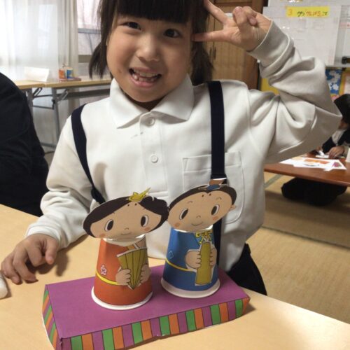 お内裏様とお雛様のペーパークラフトを切って貼り、