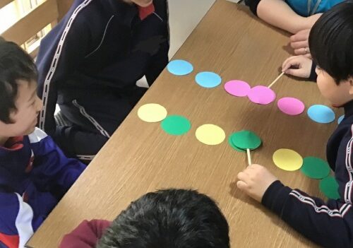 今回の活動レクは、色合わせゲーム!