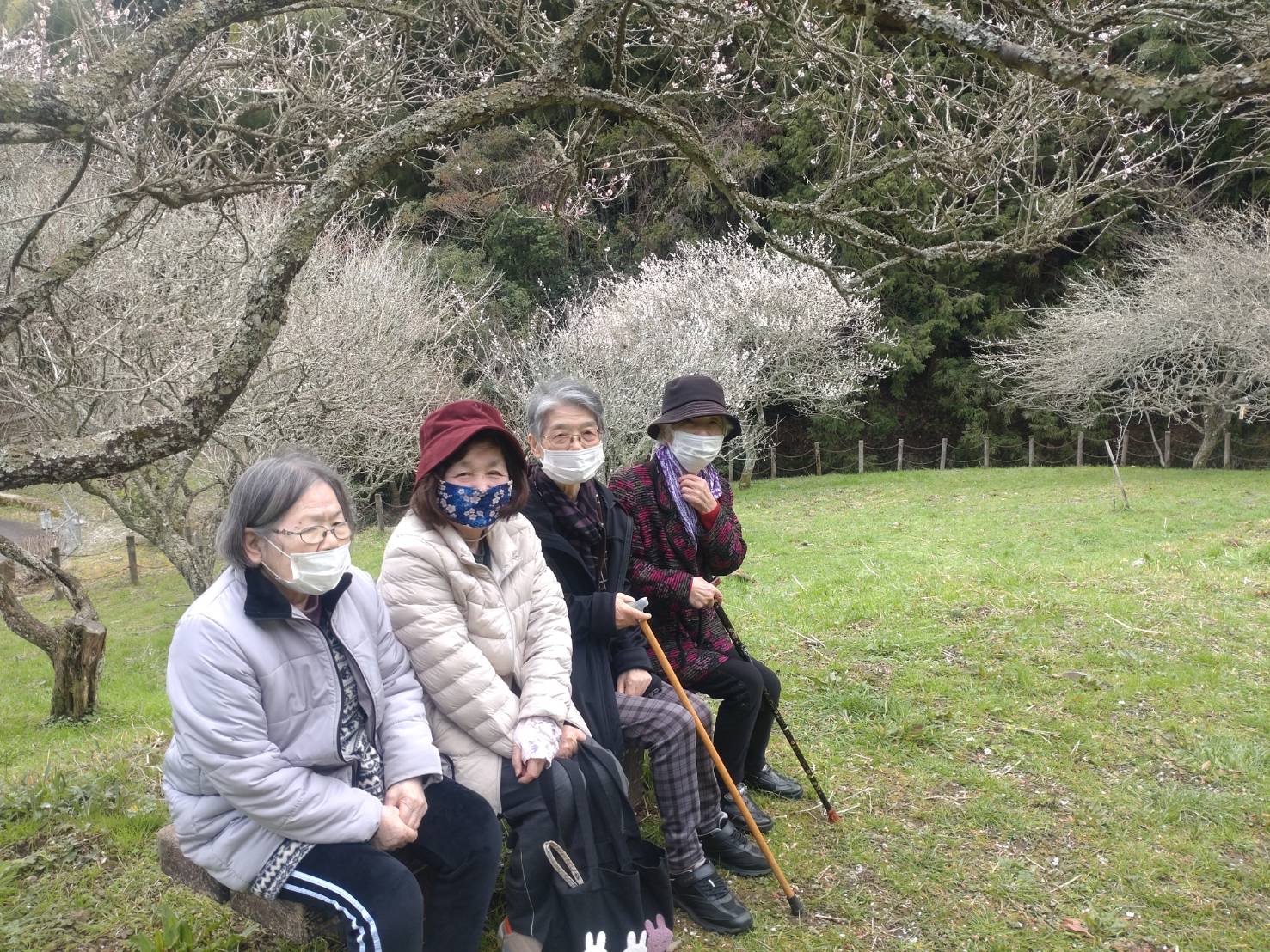 さわやか花美館 梅鑑賞 2026-03-06 2026-03-06 梅を見に三岳梅林公園へ行ってきました!! 1時間の移動で大変ですが久しぶりの外出レクでみなさんはウキウキ気分です!! 綺麗な白梅で皆さんのんびりと眺めながら過ごしていました 外出レクのシーズンがこれから始まるのでたくさんの場所へ行きましょう!!