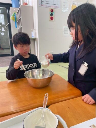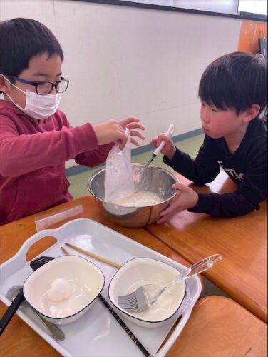 卵、牛乳、ホットケーキミックスを混ぜたら、