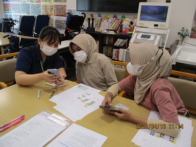 おやつを食べ終わって一息されいてる時に皆で脳トレを行いました(o^―^o)