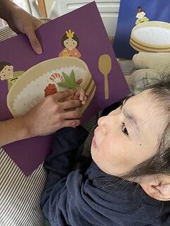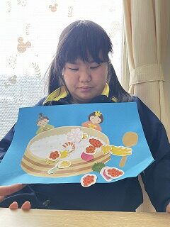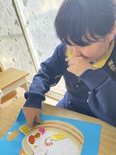 様々な具材を貼ってオリジナルなちらし寿司を作ってもらいます😊