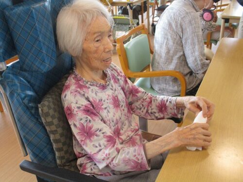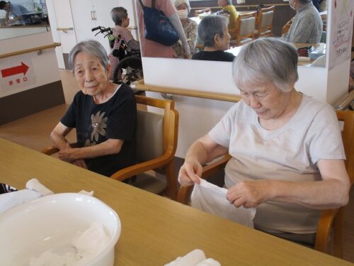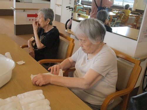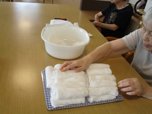 本日はご入居者様が毎食使用する〝おしぼり〟をご入居者様方が