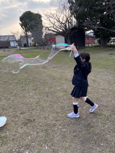 風に乗ってゆらゆら浮かぶシャボン玉を
