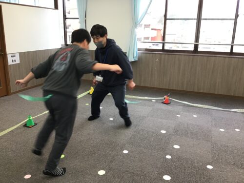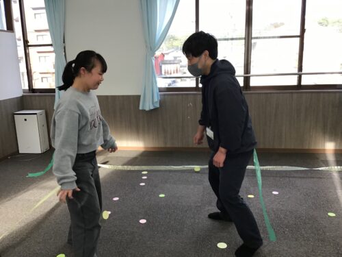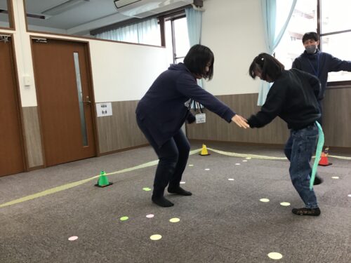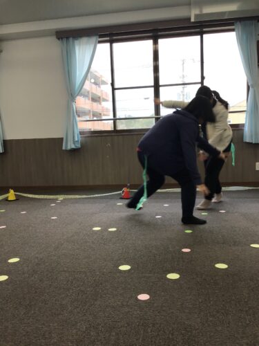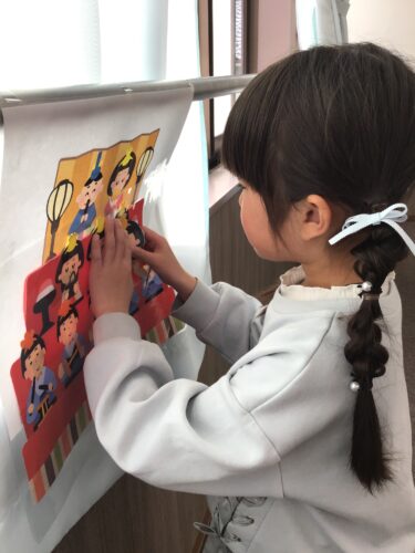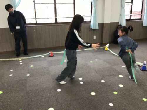 おひな様を完成させるためにまずは、しっぽ取りゲームにチャレンジ。