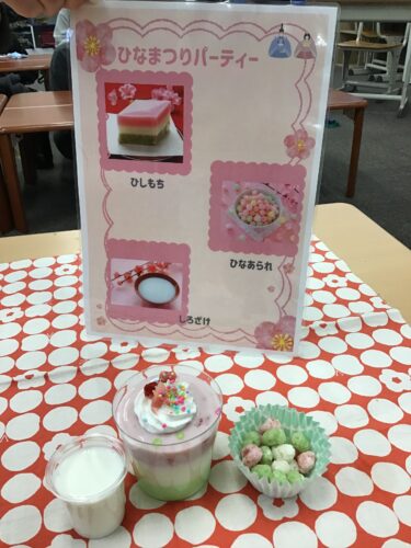 運動した後には、みんなの健やかな成長を願ってひな祭りゼリーとひなあられ。