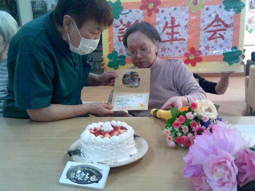 さわやかグループホーム むろらん お誕生会 2026-03-12 2026-03-11 3月のお誕生日の入居者様二名のお誕生日会を行いました♬ 手作りのケーキとメッセージカードをご用意しました♬ お誕生日おめでとうございます♪