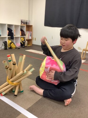今回の集団活動では、ハラハラ・ドキドキの**「棒倒しバランスゲーム」**に挑戦しました。