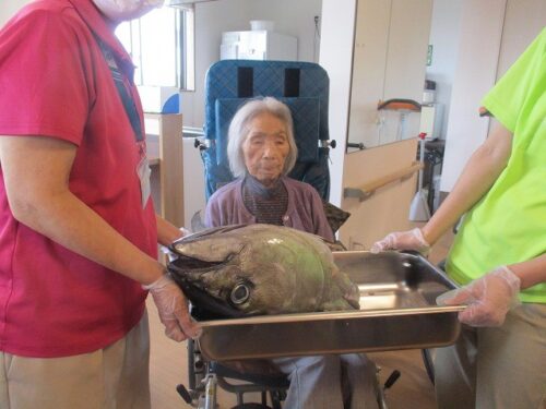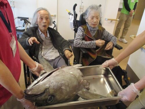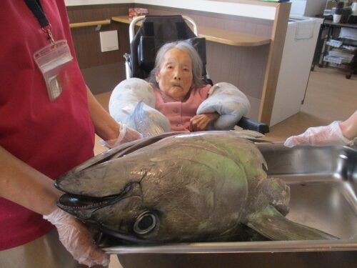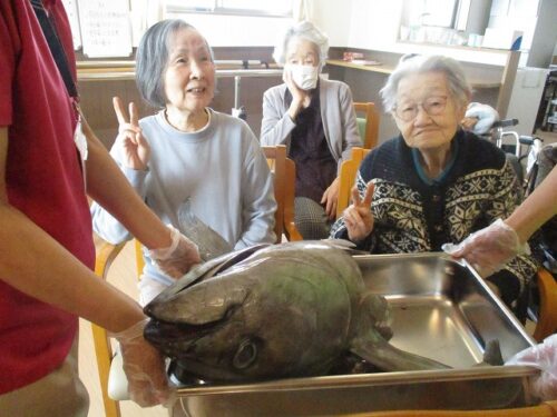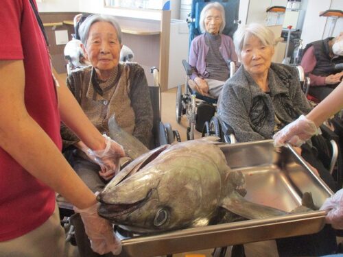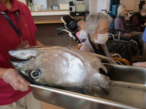 皆様とても大きいマグロの頭に興味津々です😍