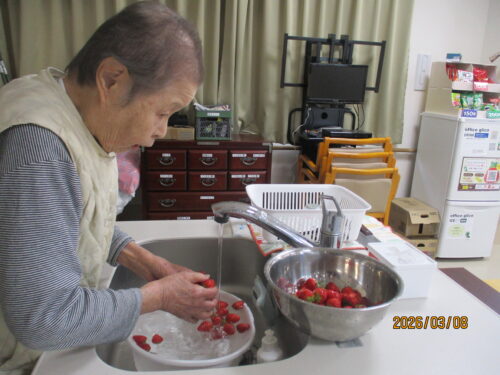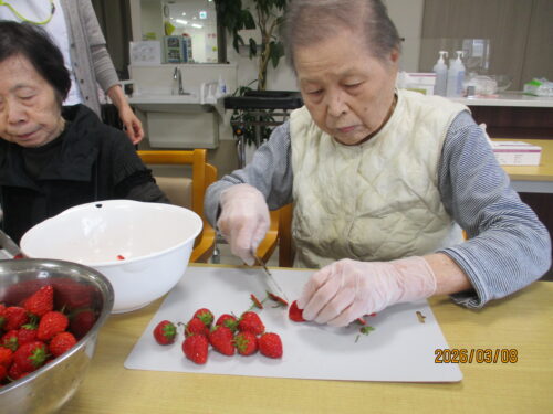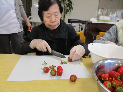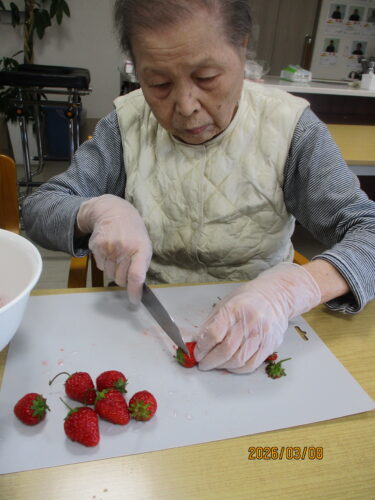 いちごを洗って、カットしていきます(`・ω・´)✨
